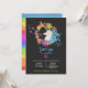 Unicorn blowing heart shaped bubbles birthday party invite.