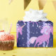 The Unicorn Carousel pattern featured on this wrapping paper design is a whimsical and playful design that showcases a group of unicorns as they ride around on a carousel. The unicorns are depicted in different shades of pink, blue, and purple, and the overall effect is enchanting and fun.
