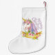 Pretty, picture of an unicorn's head and flowers, is featured on this Christmas stocking for unicorn fans, With message, "Merry Christmas", you can add your text at the top of this stocking! Made in the USA, great stocking for unicorn lovers too!
