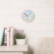Unicorn wall clock with petty pastel unicorn on a beautiful pastel watercolor background. This unicorn clock can be customised with text.