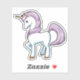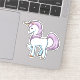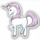 Cute, little white unicorn with purple mane and tail is featured on this custom cut vinyl sticker. Available in six different sizes you can use this sticker to decorate many items!