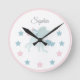 Unicorn Custom Name Cute Pink Blue Round Clock