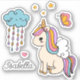 Unicorn Cute Whimsical Girly Personalised Name Stickers Labels features a cute unicorn with stars, heart, butterfly and whimsical cloud with your personalised name. Perfect for water bottles, best friends, birthday party gifts and favours. Personalise by editing the text in the text box provided. Designed by ©Evco Studio www.zazzle.com/store/evcostudio