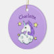 Unicorn Design Ceramic Ornament with customisable text and background colour.
