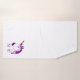 Bath towel set, consisting of a face cloth, hand towel and bath towel with a unicorn design. You can customise this bath towel set with any text of your choice. Should you require any help with customising then contact us through the message link on this page. Unicorn design bathroom towel set