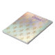A pretty unicorn design, this notepad displays a beautiful blue and purple background with a golden unicorn pattern. At the top centre is your name customised in purple cursive font. Personalise yours today!