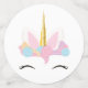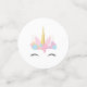Table confetti with a pastel unicorn face theme with polka dots. Each unicorn face has a gold tone (non-foil) horn.