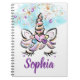 Cute Unicorn Notebook, perfect for school or everyday notes, featuring a magical unicorn illustration with clouds of glitter. Customize with a name for even more personalization.