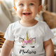 Make your little one feel magical with this adorable personalised unicorn t-shirt! Featuring a cute unicorn face with sparkling gold accents and a floral crown, this shirt is perfect for baby girls who love all things whimsical. Personalise it with your child's name to create a unique and special gift.