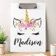 Unicorn Face With Eyelashes Personalised Name Clipboard