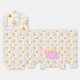 The design features a repeating pattern of elegant unicorn heads with flowing pastel-coloured manes in pink, blue, and yellow. The unicorns have expressive eyes and golden horns, giving them a magical and dreamy appearance. Surrounding them are fluffy pink clouds and glossy pink hearts, all set against a soft yellow background. The combination of elements creates a whimsical and enchanting aesthetic.
