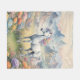 A dreamy image of a white unicorn with a rainbow main standing in a field of flowers on a fleecy blanket. In the background are majestic mountains.The perfect gift to give those who love magical and mystical unicorns. Contains generative content.
