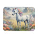 A flexible magnet showing a dreamy image of a white unicorn with a rainbow mane standing in a field of flowers. In the background are majestic mountains. The perfect gift to give those who love magical and mystical unicorns. Contains generative content.