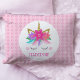 This personalised unicorn pillow case features a cute unicorn face design with stars and faux gold glitter on a pink daisy background. Personalise it with a name. Matching products also available.