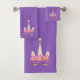 Beautiful unicorn head, flowers & gold metallic look confetti on violet background Bath Towel Set.