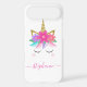 This unicorn phone case features a trendy unicorn face design with faux gold glitter. Personalise it with your name or initials.