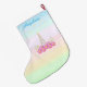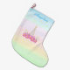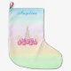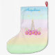 Beautiful Christmas stocking with Unicorn flowers and stars on multicolored pastel gradient background. Name ready to be personalised.