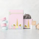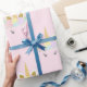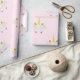 Unicorn gift wrap with adorable unicorn faces on a pink background.