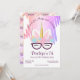 A kid’s birthday party invitation with a smiling, unicorn face that wears glasses. It invites your guests to a fun party that offers unicorns and science. Why can’t there be both? Whether you’re making slime, building robots, coding, or exploring space, magical unicorns have your back. All of the words are customisable.