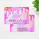 This girly and glamourous bracelet display card is the perfect way to stylise your packaging and add your own personal flair and personality. It features faux printed sparkly unicorn rainbow colour thick glitter drips on top of a holographic iridescent background. The typography is an elegant cursive script with a modern serif font to match. The colour scheme includes a bright and vibrant neon pink, peach, blue, purple, yellow, and coral. It's chic, pretty, unique, and luxurious; the perfect way to advertise your business and stylise your marketing and advertisement material for your customers. (bracelet cut lines are printed markers only, cutting must be completed by the customer with an Exacto knife)