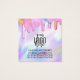 This girly and glamourous earring business logo display card is the perfect way to stylise your packaging and add your own personal flair and personality. It features faux printed sparkly unicorn rainbow colour thick glitter drips on top of a holographic iridescent background. The typography is an elegant cursive script with a modern serif font to match. The colour scheme includes pink, peach, blue, purple, yellow, and coral. It's chic, pretty, unique, and luxurious; the perfect way to advertise your business and stylise your marketing and advertisement material for your customers. (earring holes are printed markers only, puncturing must be completed by the customer)