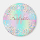 Unicorn Holographic Glitter magnet - A trendy sparkling coloured magnet with mixed turquoise, pink and mauve and light yellow glitter. You can personalise this magnet by adding your name and initials.