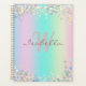 Sketchbook Unicorn Holographic Glitter Planner - A trendy sparkling coloured Planner with mixed turquoise, pink and mauve and light yellow glitter. You can personalise this Planner by adding your name and initials.