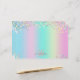 Unicorn Holographic Glitter Stationery - A trendy sparkling coloured Stationery with mixed turquoise, pink and mauve and light yellow glitter. You can personalise this Stationery by adding your name and initials.