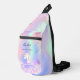 A holographic, unicorn and rainbow coloured background in pink, purple and mint green. Decorated with confetti and a cute unicorn. Personalise and add your first name, monogram initials and full name.