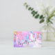 This girly and glamourous customer loyalty business card is perfect for a stylish and trendy professional businesswoman. It features faux printed sparkly unicorn rainbow colour thick glitter drips on top of a holographic iridescent background. The typography is an elegant cursive script with a modern serif font to match. The colour scheme includes pink, peach, blue, purple, yellow, and coral. It's chic, pretty, unique, and luxurious; the perfect way to advertise your business and stylise your marketing and advertisement material for your customers.