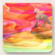 Brilliantly coloured slightly abstract view of the Painted Desert with this majestic Unicorn standing on a ledge overlooking the view at Sunset.