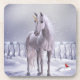 Add a touch of magic to your entertaining with these coasters featuring a snow white unicorn with a long flowing mane and tail and a golden horn standing in the gently falling snow in this digital artwork by artist Jayne Wilson.