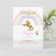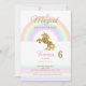 These unicorn invitations have a rainbow and golden unicorn on it. They say "A Magical day is on the way!"