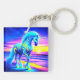 This keychain has a unicorn pictured on it.