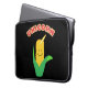 This laptop sleeve has a funny cute cartoon corn trying to be a unicorn. It is a fun pun design suitable for all.