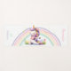 A chic, personalised yoga mat with a cute unicorn theme, featuring a watercolor painting of an adorable unicorn, on a yoga mat, in a yoga pose, with flowers. In the background, a pastel coloured rainbow and gold stars (digital). A perfect gift for a girl, teen or woman - mum, your girlfriend, best friend or any special person in your life who loves yoga, unicorns and pastel colours, for a birthday, Christmas, Mother's Day or any occasion.