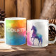 Discover enchantment in every sip with our captivating geometric Unicorn mug! This mesmerising low-polygon style design, in luminous pastel shades, offers the option of personalisation. Add your name or a loved one's name to this enchanting design, creating a unique mug that fuses futuristic fantasy with a touch of personal charm. Immerse yourself in the captivating world of this majestic creature, as each sip becomes an escape into a realm of personalised wonder and imagination. Elevate your coffee or tea experience and infuse your mornings with a touch of whimsy, beauty, and individuality. Embrace the extraordinary and make every cup a journey into your very own fantastical realm.
