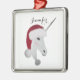 Unicorn Magical Christmas Personalised Metal Ornament makes an elegant gift idea for a unicorn lover! The beautiful white unicorn is wearing a red Santa hat and the customised name is on the upper area of the Christmas ornament. Background shown is white and is available in a variety of colours.