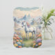 A note card with one side blank for your message. A note card showing a dreamy image of a white unicorn with a rainbow mane standing in a field of flowers. In the background are majestic mountains. The perfect gift to give those who love magical and mystical unicorns. Contains generative content.