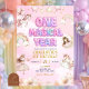 Pink Unicorn Fifth Birthday Invitation, One Magical Year First Birthday Invitation, Editable Unicorn Theme First Year Birthday Kids Party Invitation