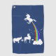 The golf towel exceeded my expectations! My husband actually approved of it! He liked the picture quality, thickness and overall usefulness of the golf towel I ordered to commemorate his lowest ever golf score. He liked it so well that I ordered 8 more towels with photos of his home golf course. Each one of the eight has the name of one of his golf group members. I will give them as party favors at my husband's 70th birthday party later this year. The different names were easy to add because the Zazzle template is so very easy to use. The colors were bright and authentic in all 9 of the towels that I made. The one of the 9 that I ordered has come out of the wash and line dry looking great.