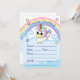 Unicorn Party invites for any occasion. Cute baby unicorn leaping over blue clouds in front of a pastel coloured rainbow, clouds and stars. Use invitation as is or replace the text in any of the templates.