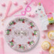 Elegant paper plates for celebrations and party with colorful unicorn and transparent floral background. Easy to add your custom text on them.
