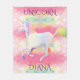 Unicorn galloping in rainbow colours blanket. Personalised name.