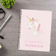 A girly notebook for school, journalling or diary. A soft, blush pink background, decorated with a cute pink watercolored unicorn. Personalise and add a name.