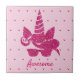 Unicorn Pink Glitter Cute Girly Kids Ceramic Tile