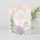 Unicorn Pink Gold Floral First Birthday Invitation