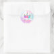 Pink And Gold Rainbow Unicorn Round Favour Tag.