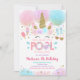 Unicorn Pool Party Pink Gold Birthday Invitation