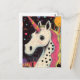 A unique unicorn with black polka dots and a pink and yellow mane and horn fantasy AI generated art